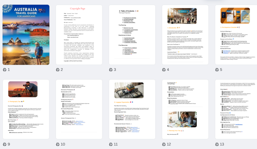 Avoid tourist traps, uncover authentic experiences, and get trusted local tips designed to help you save money, maximize your time, and experience Australia like a savvy traveler. With detailed itineraries, Amazon gear recommendations, and curated GetYourGuide activities, you’ll have everything you need in one place.